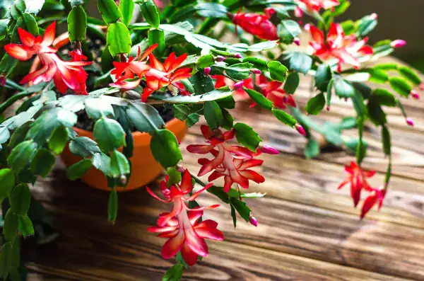 Este cactus en algunos lugares es llamado plumas de Santa Teresa o cactus de Navidad. Es de tipo colgante, produciendo largos tallos que caen. Cuando es temporada de floración desarrollarán en las puntas llamativas flores de color rosa, rojo o blanco que duran varios días.