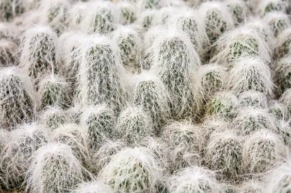 Es un cactus cilíndrico que recibe el peculiar nombre común porque desarrolla pelillos blancos muy largos. Puede llegar a medir 15 metros de altura, pero mientras es juvenil puede tenerse en interiores. Su crecimiento es lento así que podrás disfrutarlo dentro de casa por varios años.